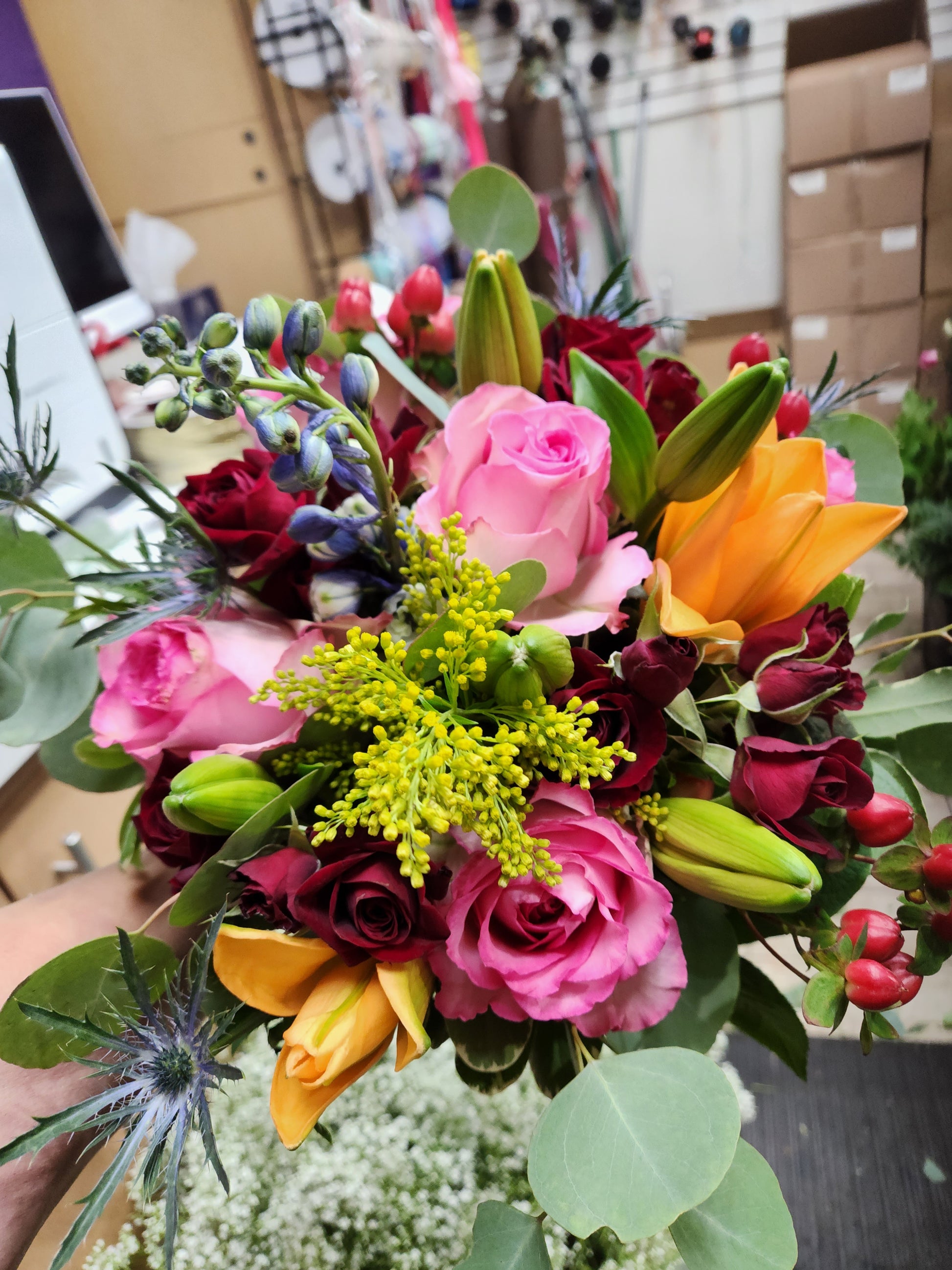 Bouquets range from petite at $49.98, handtied at $79.99, grande at $99.99 to $129.99